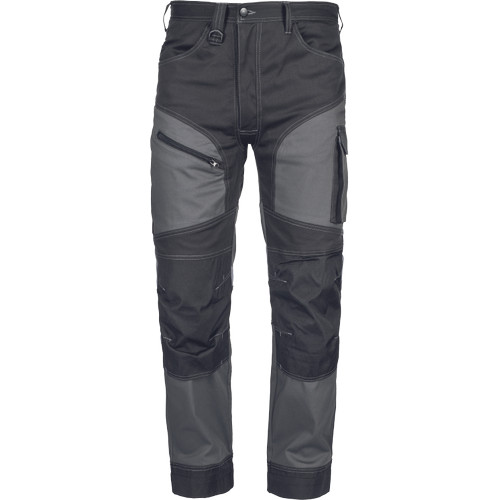 • minőségi férfi munkanadrág elasztikus anyagból • 2 oldalzseb • 2 hátsó zseb tépőzárral • 2 combzseb • megerősített térdzsebek térdvédő betét behelyezési lehetőséggel • hosszabbítható nadrágszárak akár 5 cm-rel • díszvarrás
