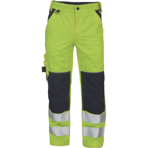 • férfi jólláthatósági munkanadrág rugalmas derékkal és multifunkciós zsebekkel, fényvisszavető elemekkel • megerősített térdrész és térdzseb Oxford 600D anyagból térdvédő behelyezéséhez • tartós tripla varrás a szárakon és az üleprészen • a meghosszabbítható szárakon nyomtatott fényvisszavető csíkokkal