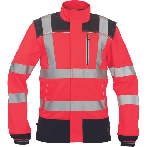 • jólláthatósági férfi dzseki levehető ujjakkal, cipzárral záródó kialakításban tépőzáras hajtókával • praktikus kialakítás 2 oldalzsebbel, elöl 1 zsebbel, a vállakon Oxford 600D anyagból készült megerősítő rátétekkel • a derékrészen, a vállakon és az ujjakon 5cm-es nyomtatott fényvisszavető csíkokkal van ellátva • kontrasztos színű tűzések