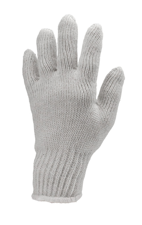 Fehér poliamiddal erősített kesztyű, 10-es kötésűNem szöszölGumírozott mandzsetta