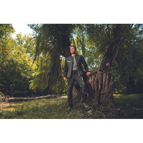 • dzseki steppelt anyag és kötött ujjak kombinációjával • jól láthatósági színkiemelés és fényvisszavető részletek • 2 oldalzseb • cipzáras mellzseb