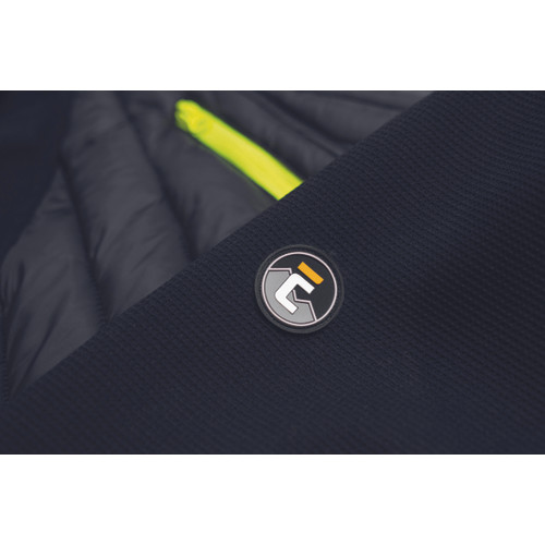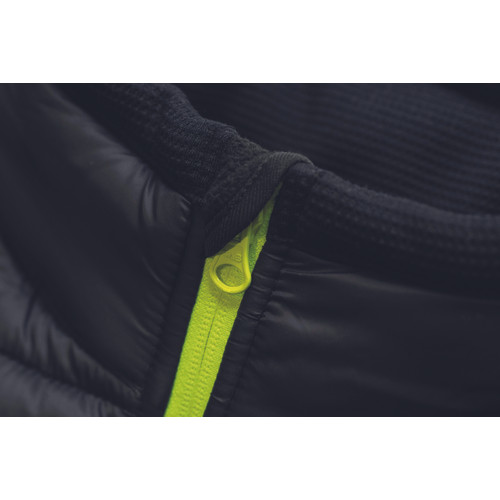 • dzseki steppelt anyag és kötött ujjak kombinációjával • jól láthatósági színkiemelés és fényvisszavető részletek • 2 oldalzseb • cipzáras mellzseb