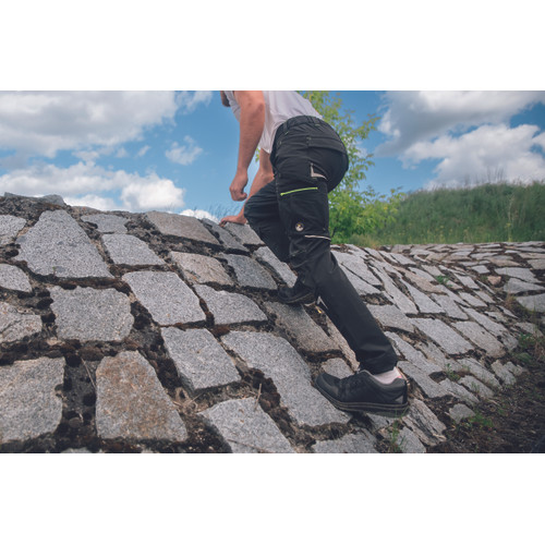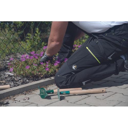 kényelmes férfi nadrág rugalmas anyagból • jól láthatósági és fényvisszavető elemekkel kiemelve • Oxford poliészter erősítés a térdrészen, térdvédő betétek behelyezésének lehetőségével • 2 elülső zseb • 2 hátsó zseb • 2 többfunkciós combzseb