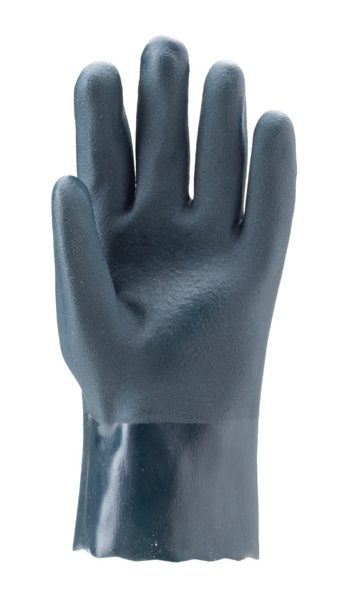 Gyapjú dzsörzé erősítésZöld, teljes PVC mártásDuplán mártott, érdesített második réteggelHullámosra vágott biztonsági mandzsettaHossza: 27cm