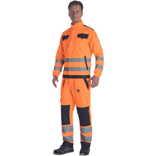 • Unisex HI-VIS munkakabát cipzárral, takarólappal ellátva • 2 oldalzseb • 2 mellzseb tépőzárral • 2 bevarrt, 5 cm széles fényvisszavető csík az oldalak mentén és az alsó ujjrészeken • megerősített vállrészek • rugalmas mandzsetták és elasztikus derékrész.