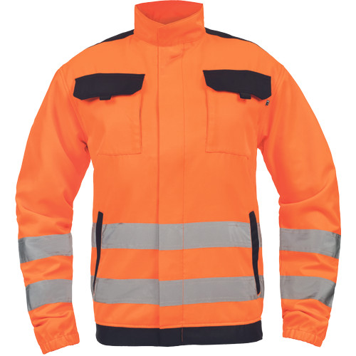 • Unisex HI-VIS munkakabát cipzárral, takarólappal ellátva • 2 oldalzseb • 2 mellzseb tépőzárral • 2 bevarrt, 5 cm széles fényvisszavető csík az oldalak mentén és az alsó ujjrészeken • megerősített vállrészek • rugalmas mandzsetták és elasztikus derékrész.