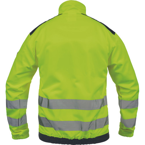 • Unisex HI-VIS munkakabát cipzárral, takarólappal ellátva • 2 oldalzseb • 2 mellzseb tépőzárral • 2 bevarrt, 5 cm széles fényvisszavető csík az oldalak mentén és az alsó ujjrészeken • megerősített vállrészek • rugalmas mandzsetták és elasztikus derékrész.
