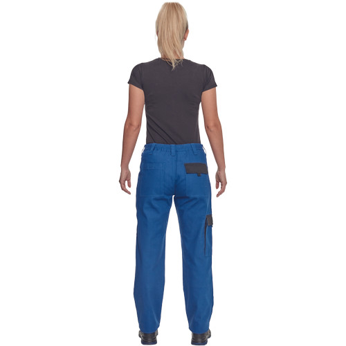 • női munkanadrág rugalmas derékkal • 2 első zseb, 1 oldalzseb, 2 hátsó zseb • megerősített térdrész • leengedhető szárak • anyag: 100% pamut, anyagvastagság: 260 g/m2