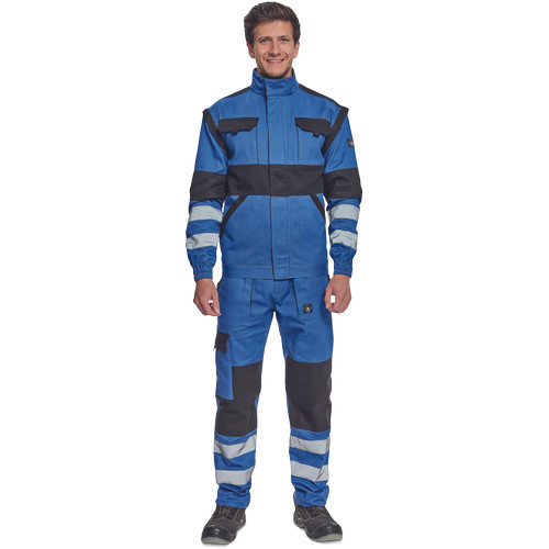 • férfi cipzáras munkakabát levehető újakkal • 2 első zseb • 2 mellzseb • megerősítés a váll és könyök részeken • rugalmas mandzsetta és alsó derékszegély • fényvisszavető csíkok az ujjakon és a kabát hátán, anyag: 100% pamut, anyagvastagság: 260 g/m2