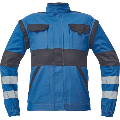 • férfi cipzáras munkakabát levehető újakkal • 2 első zseb • 2 mellzseb • megerősítés a váll és könyök részeken • rugalmas mandzsetta és alsó derékszegély • fényvisszavető csíkok az ujjakon és a kabát hátán, anyag: 100% pamut, anyagvastagság: 260 g/m2