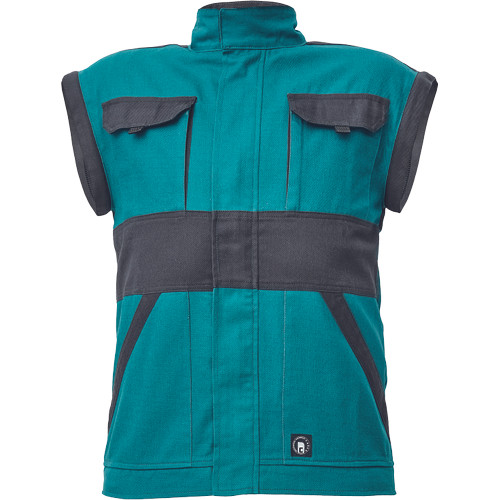 • férfi cipzáras munkakabát levehető újakkal • 2 első zseb • 2 mellzseb • megerősítés a váll és könyök részeken • rugalmas mandzsetta és alsó derékszegély • fényvisszavető csíkok az ujjakon és a kabát hátán, anyag: 100% pamut, anyagvastagság: 260 g/m2