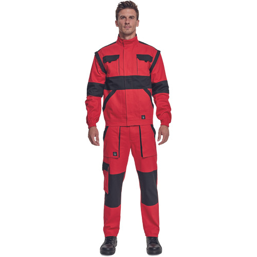 • férfi cipzáras munkakabát levehető ujjakkal • 2 oldalzseb, 2 mellzseb • megerősítés a váll- és könyökrészeken • rugalmas mandzsetta és derékpánt • anyag: 100% pamut, anyagvastagság: 260 g/m2