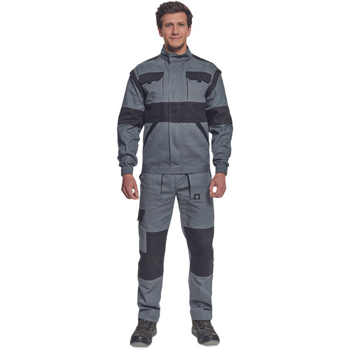 • férfi cipzáras munkakabát levehető ujjakkal • 2 oldalzseb, 2 mellzseb • megerősítés a váll- és könyökrészeken • rugalmas mandzsetta és derékpánt • anyag: 100% pamut, anyagvastagság: 260 g/m2