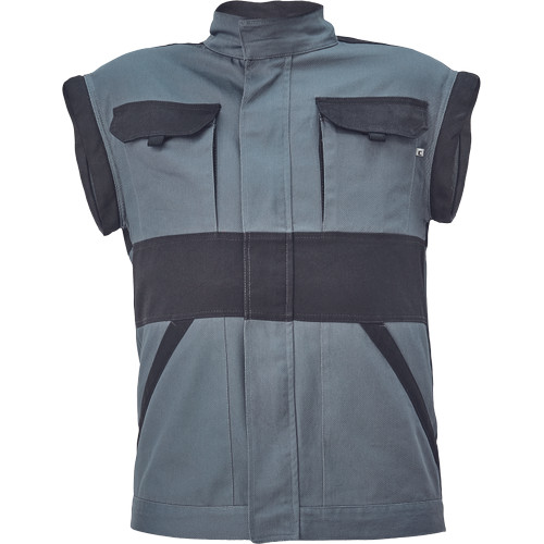 • férfi cipzáras munkakabát levehető ujjakkal • 2 oldalzseb, 2 mellzseb • megerősítés a váll- és könyökrészeken • rugalmas mandzsetta és derékpánt • anyag: 100% pamut, anyagvastagság: 260 g/m2
