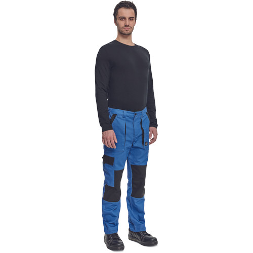 • férfi munkanadrág rugalmas derékkal • 2 első zseb, 1 oldalzseb, 2 hátsó zseb • megerősített térdrész • leengedhető szárak