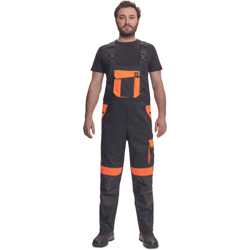 • férfi mellesnadrág rugalmas derékkal, széles pántokkal, műanyag csatokkal • 2 első zseb, 1 oldalzseb, 1 nagy mellzseb, 2 hátsó zseb • 2 kis hátsó zseb a jobb száron • fényvisszavető szegés • Oxford 600D megerősített térdrész, térdvédőtartó • leengedhető szárak