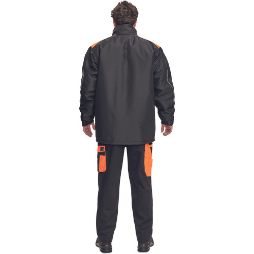 • férfi téli kabát • tépőzáras takarópánttal fedett cipzár • 2 oldalsó zseb, 2 mellzseb • 1 belső mobiltelefonzseb • rugalmas mandzsetta tépőzárral • fényvisszavető szegés