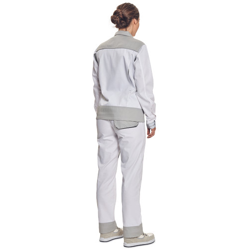 • női munkakabát pamut-PES kevertszálas anyagból • nőies szabás • dekoratív paszpol kontrasztos színekben • hálós betétek • fedett cipzár és zsebek • 2 oldalzseb • 1 mellzseb, benne rejtett D-gyűrűvel • ipari mosásra alkalmas • lehetőség az azonosító chip beillesztésére