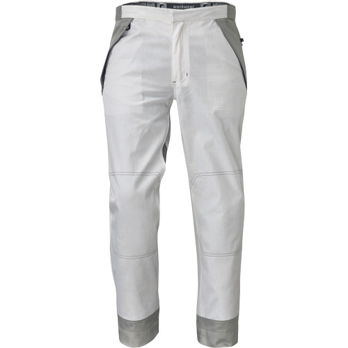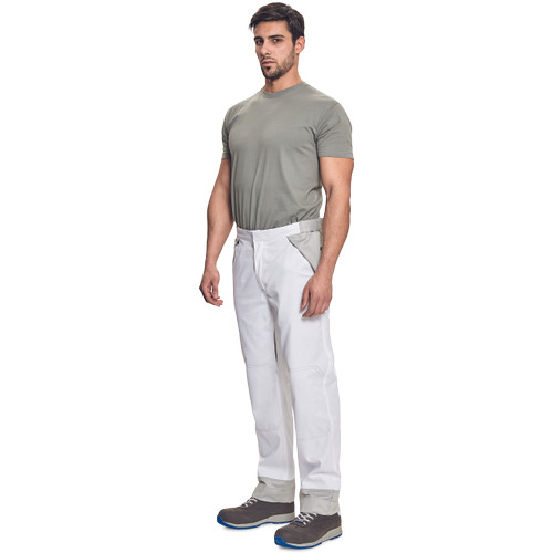 • férfi munkanadrág könnyű pamut-PES kevertszálas anyagból • dekoratív paszpol kontrasztos színekkel • hálós betétek • zsebfedős zsebek • a derékbőség tépőzárral állítható • 5 cm-rel leengedhető szárak • 2 első zseb, az egyikben D-gyűrű található • 1 hátsó zseb •tartós anyagú • puhább, hajlékonyabb szövet