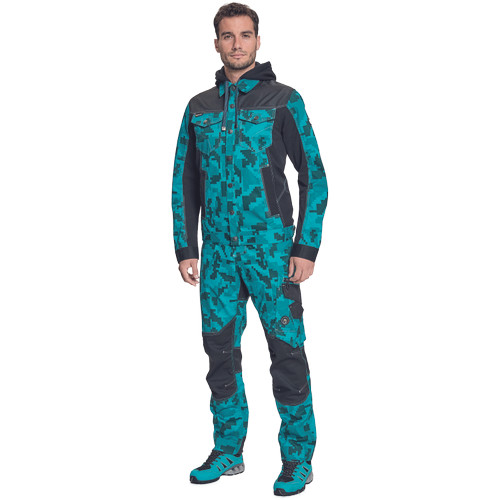 • férfi munkakabát férfi munkakabát innovatív, pamutgazdag, rugalmas TRIFIBETEX, illetve TRIFIBETEXPRO® anyagokból CORDURA® betétekkel, digitális terepmintával, fém gombok, állítható ujjvégek, 2 oldalsó zseb, 2 cipzáras mellkasi zseb, fényvisszavető csíkok