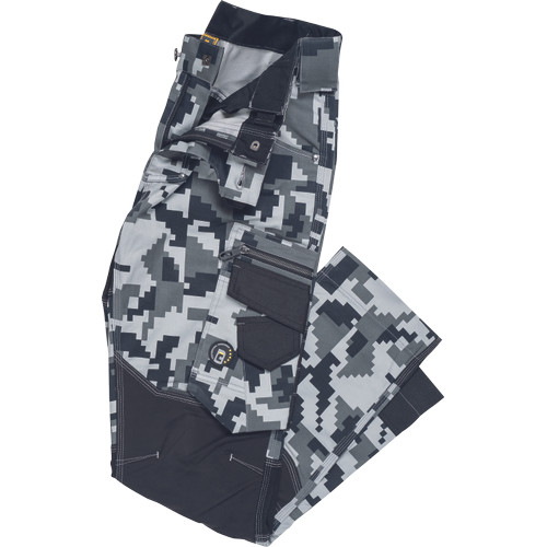 férfi munkanadrág innovatív, rugalmas TRIFIBETEX® anyagból, CORDURA® betétekkel digitális terepmintával, elöl 2 ékzseb, hátul 2 tépőzáras foltzseb, bal oldalt nagy multifunkciós zseb, jobb oldalt multifunkciós vonalzó, kés és ceruzatartó, fém "D" gyűrű, rugalmas derék, hosszabbítható szárhossz, fényvisszavető elemek, dekoratív tripla varrás kontrasztos színnel, kalapácstartó