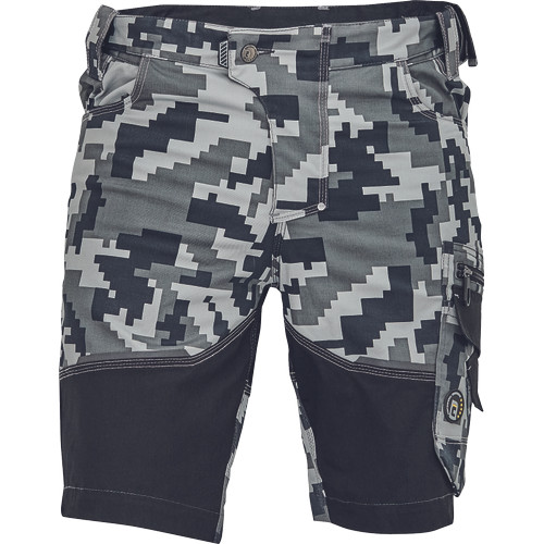 • férfi rövidnadrág innovatív • rugalmas Trifibetex® anyagból digitális terepmintával • 2 ékzseb • hátul 2 tépőzáras foltzseb • bal oldalon nagy multifunkciós zseb • jobb oldalon multifunkciós vonalzó • kés- és ceruzatartó • fém "D" gyűrű • rugalmas derék • fényvisszavető szegés • dekoratív tripla varrás kontrasztos színnel • kalapácstartó