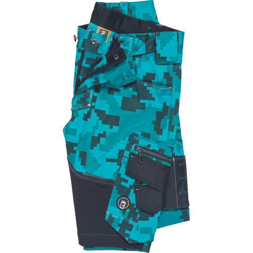 • férfi rövidnadrág innovatív • rugalmas Trifibetex® anyagból digitális terepmintával • 2 ékzseb • hátul 2 tépőzáras foltzseb • bal oldalon nagy multifunkciós zseb • jobb oldalon multifunkciós vonalzó • kés- és ceruzatartó • fém "D" gyűrű • rugalmas derék • fényvisszavető szegés • dekoratív tripla varrás kontrasztos színnel • kalapácstartó