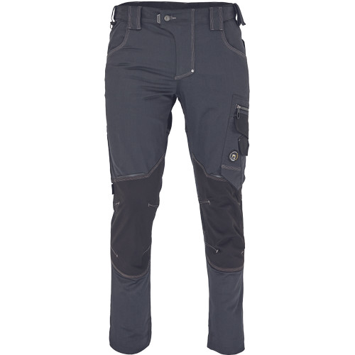• férfi munkanadrág innovatív rugalmas Trifibetex® anyagból CORDURA® betétekkel • elöl 2 ékzseb • hátul 2 tépőzáras foltzseb • bal oldalon nagy multifunkciós zseb • jobb oldalon multifunkciós zseb vonalzónak • kés- és ceruzatartó • fém "D" gyűrű • rugalmas derék• hosszabbítható szárak • fényvisszavető részletek • dekoratív tripla tűzés kontrasztos színnel • kalapácstartó