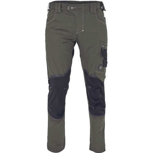 • férfi munkanadrág innovatív rugalmas Trifibetex® anyagból CORDURA® betétekkel • elöl 2 ékzseb • hátul 2 tépőzáras foltzseb • bal oldalon nagy multifunkciós zseb • jobb oldalon multifunkciós zseb vonalzónak • kés- és ceruzatartó • fém "D" gyűrű • rugalmas derék• hosszabbítható szárak • fényvisszavető részletek • dekoratív tripla tűzés kontrasztos színnel • kalapácstartó