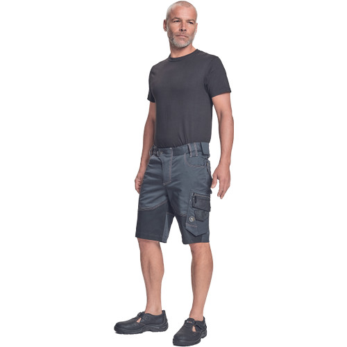 • férfi rövidnadrág innovatív, rugalmas Trifibetex® anyagból • 2 ékzseb • hátul 2 tépőzáras foltzseb • bal oldalon nagy multifunkciós zseb • jobb oldalon multifunkciós zseb vonalzónak • kés- és ceruzatartó • fém "D" gyűrű • rugalmas derék • fényvisszavető részletek • dekoratív tripla varrás kontrasztos színnel • kalapácstartó