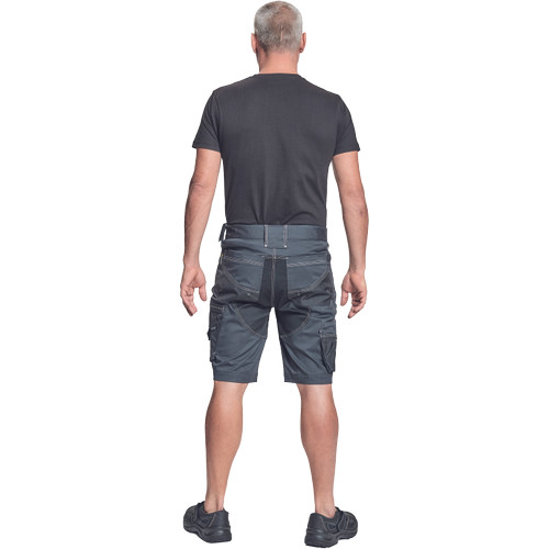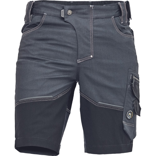 • férfi rövidnadrág innovatív, rugalmas Trifibetex® anyagból • 2 ékzseb • hátul 2 tépőzáras foltzseb • bal oldalon nagy multifunkciós zseb • jobb oldalon multifunkciós zseb vonalzónak • kés- és ceruzatartó • fém "D" gyűrű • rugalmas derék • fényvisszavető részletek • dekoratív tripla varrás kontrasztos színnel • kalapácstartó