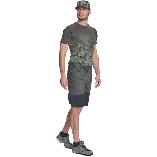 • férfi rövidnadrág innovatív, rugalmas Trifibetex® anyagból • 2 ékzseb • hátul 2 tépőzáras foltzseb • bal oldalon nagy multifunkciós zseb • jobb oldalon multifunkciós zseb vonalzónak • kés- és ceruzatartó • fém "D" gyűrű • rugalmas derék • fényvisszavető részletek • dekoratív tripla varrás kontrasztos színnel • kalapácstartó