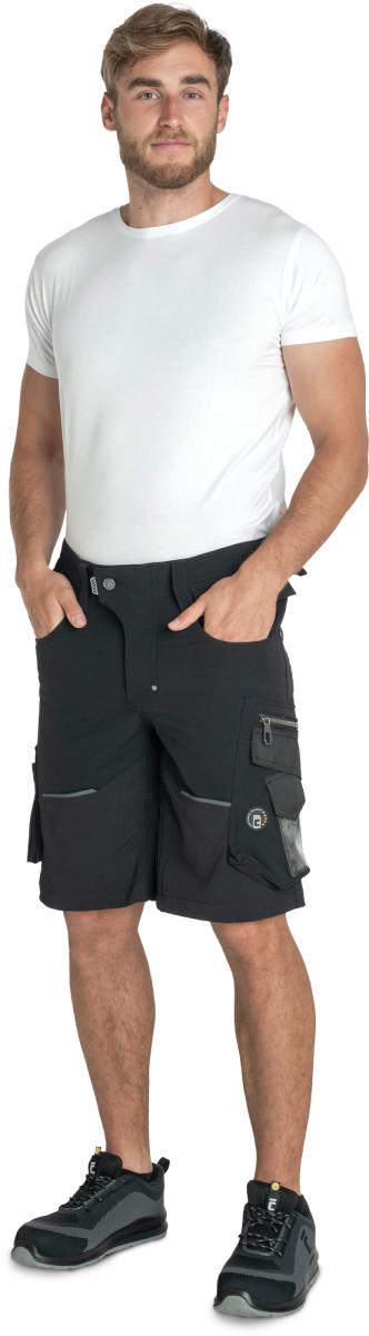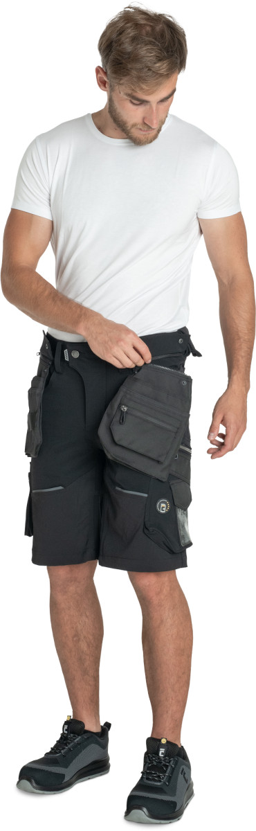 Férfi munkanadrág egyedi négyirányú stretch anyagból, Trifibetex-PRO® alapanyagból, melyet 2 oldalsó, eltávolítható, multifunkcionális lengőzseb egészít ki • 2 elülső ékzseb • 2 hátsó felvarrt zseb tépőzárral • 2 multifunkcionális combzseb • CORDURA® megerősítés • tartós hármas varrás a szárakon és az üleprészen• rugalmas derék • színben harmonizáló fényvisszavető részletek.
