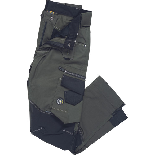 férfi munkanadrág innovatív, rugalmas TRIFIBETEX PRO® anyagból, elöl 2 ékzseb, hátul 2 tépőzáras foltzseb, bal oldalt nagy multifunkciós zseb, jobb oldalt multifunkciós vonalzó, kés és ceruzatartó, fém "D" gyűrű, rugalmas derék, hosszabbítható szárhossz, fényvisszavető elemek, dekoratív tripla varrás kontrasztos színnel, kalapácstartó