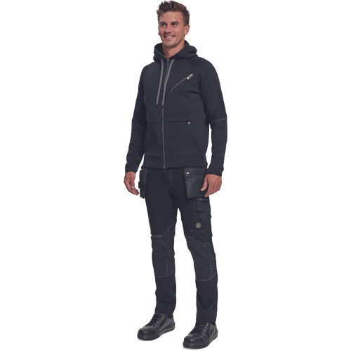 • férfi kapucnis, cipzáras pulóver • zsinórral állítható kapucnival • 2 mély zsebbel • 1 cipzáras mellzsebbel • fényvisszavető elemekkel kiegészítve80 % poliészter, 14 % viszkóz, 6 % elasztán, 300 g/m²