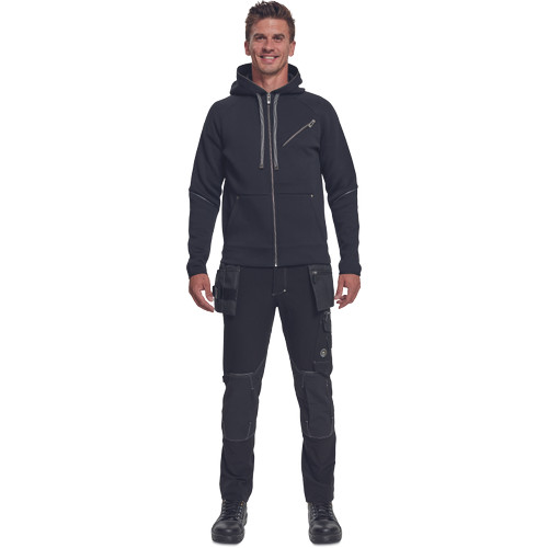 • férfi kapucnis, cipzáras pulóver • zsinórral állítható kapucnival • 2 mély zsebbel • 1 cipzáras mellzsebbel • fényvisszavető elemekkel kiegészítve80 % poliészter, 14 % viszkóz, 6 % elasztán, 300 g/m²