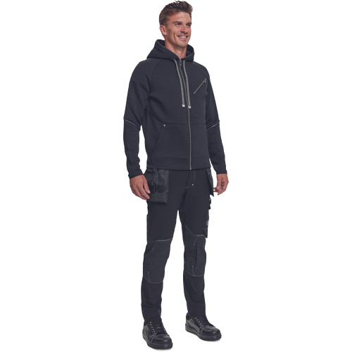• férfi kapucnis, cipzáras pulóver • zsinórral állítható kapucnival • 2 mély zsebbel • 1 cipzáras mellzsebbel • fényvisszavető elemekkel kiegészítve80 % poliészter, 14 % viszkóz, 6 % elasztán, 300 g/m²