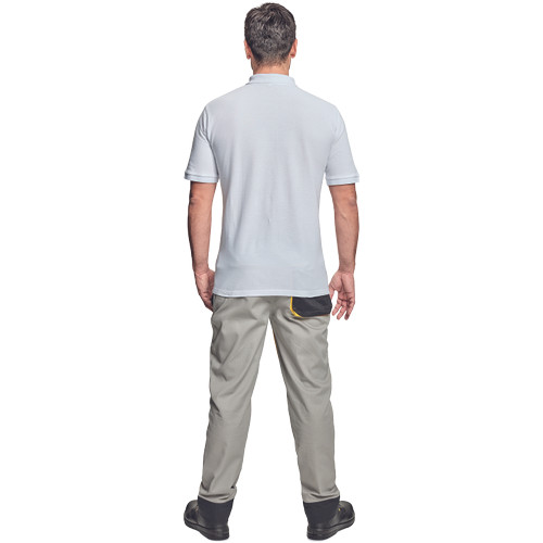 • rövid ujjú galléros pamut póló, antisztatikus szálakkal • univerzális minta • műanyag gombolású nyakkal