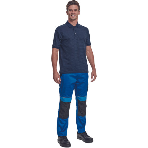 • rövid ujjú galléros pamut póló, antisztatikus szálakkal • univerzális minta • műanyag gombolású nyakkal