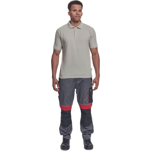 • rövid ujjú galléros pamut póló, antisztatikus szálakkal • univerzális minta • műanyag gombolású nyakkal