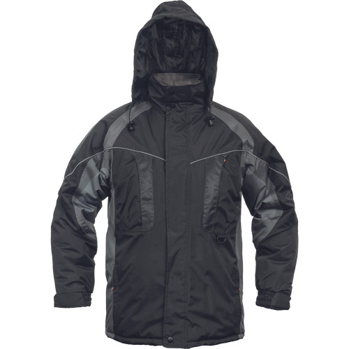 • bélelt, vízálló kabát gallérba hajtott kapucnival • külső szövet kopásállóságot növelő kezeléssel • húzózsinórral szűkíthető alsó szegély • fényvisszavető részletek