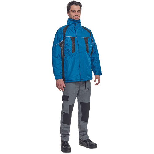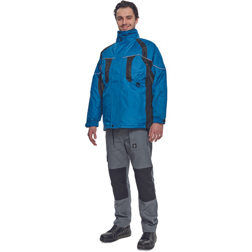 • bélelt, vízálló kabát gallérba hajtott kapucnival • külső szövet kopásállóságot növelő kezeléssel • húzózsinórral szűkíthető alsó szegély • fényvisszavető részletek