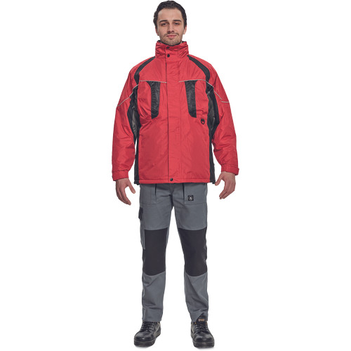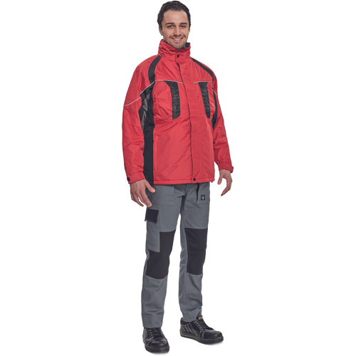 • bélelt, vízálló kabát gallérba hajtott kapucnival • külső szövet kopásállóságot növelő kezeléssel • húzózsinórral szűkíthető alsó szegély • fényvisszavető részletek
