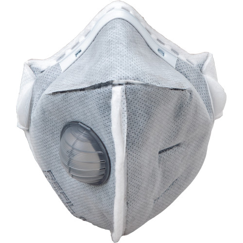 »Összehajtható szűrőfélálarcok kilégző szeleppel és aktívszén réteggel a megengedett koncentrációk 12-szereséig szilárd és folyékony aeroszolok esetében, gőzök és gázok ellen legfeljebb az MK értékig: FFP2 NR.