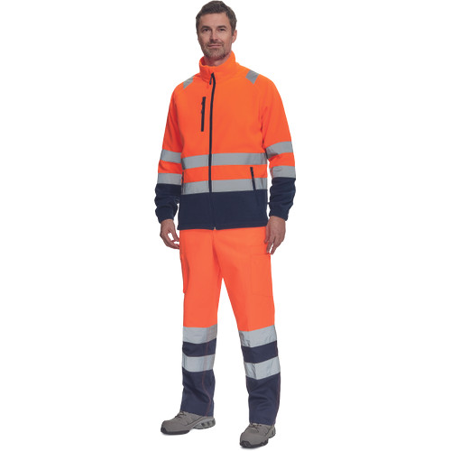 • Hi-Vis férfi polár pulóver 5 cm széles fényvisszavető csíkokkal • cipzáras kivitelben • 1 mellkasi és 2 cipzáras oldalzseb • rugalmas mandzsetták, a pulóver alja húzózsinórral szűkíthető