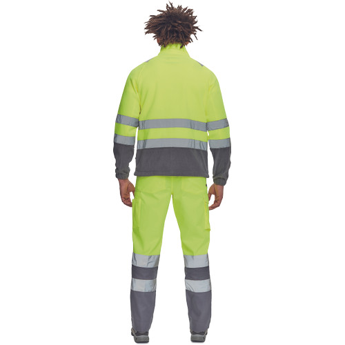 • Hi-Vis férfi polár pulóver 5 cm széles fényvisszavető csíkokkal • cipzáras kivitelben • 1 mellkasi és 2 cipzáras oldalzseb • rugalmas mandzsetták, a pulóver alja húzózsinórral szűkíthető