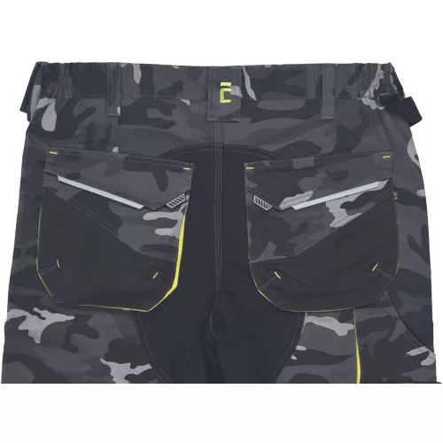 • férfi nadrág rugalmas derékkal és többfunkciós zsebekkel • megerősített térdrész és térdzseb Oxford 600D anyagból térdvédő behelyezéséhez • ellenálló hármas fedőző varrás az üleprészen és a meghosszabítható szárakon • modern terepmintával