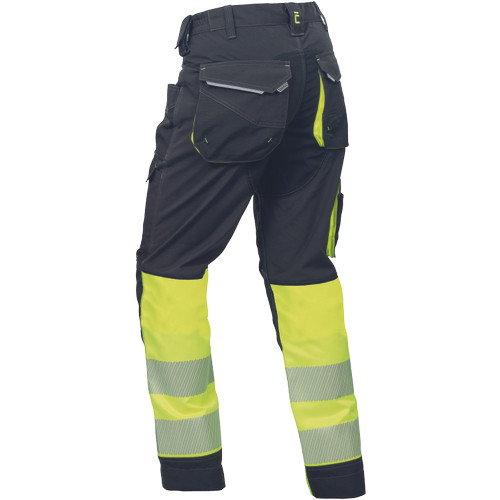 • Férfi jólláthatósági nadrág rugalmas derékkal és többfunkciós zsebekkel, 7 cm-es szegmentált fényvisszavető csíkokkal. Megerősített térdrész és térdzseb Oxford 600D anyagból térdvédő behelyezéséhez. Ellenálló hármas fedőző varrás az üleprészen és a meghosszabbítható szárakon.