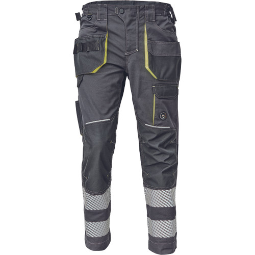 • férfi nadrág rugalmas derékkal és többfunkciós zsebekkel, 7 cm-es szegmentált fényvisszavető csíkokkal • megerősített térdrész és térdzseb Oxford 600D anyagból térdvédő behelyezéséhez • ellenálló hármas fedőző varrás az üleprészen és a meghosszabítható szárakon
