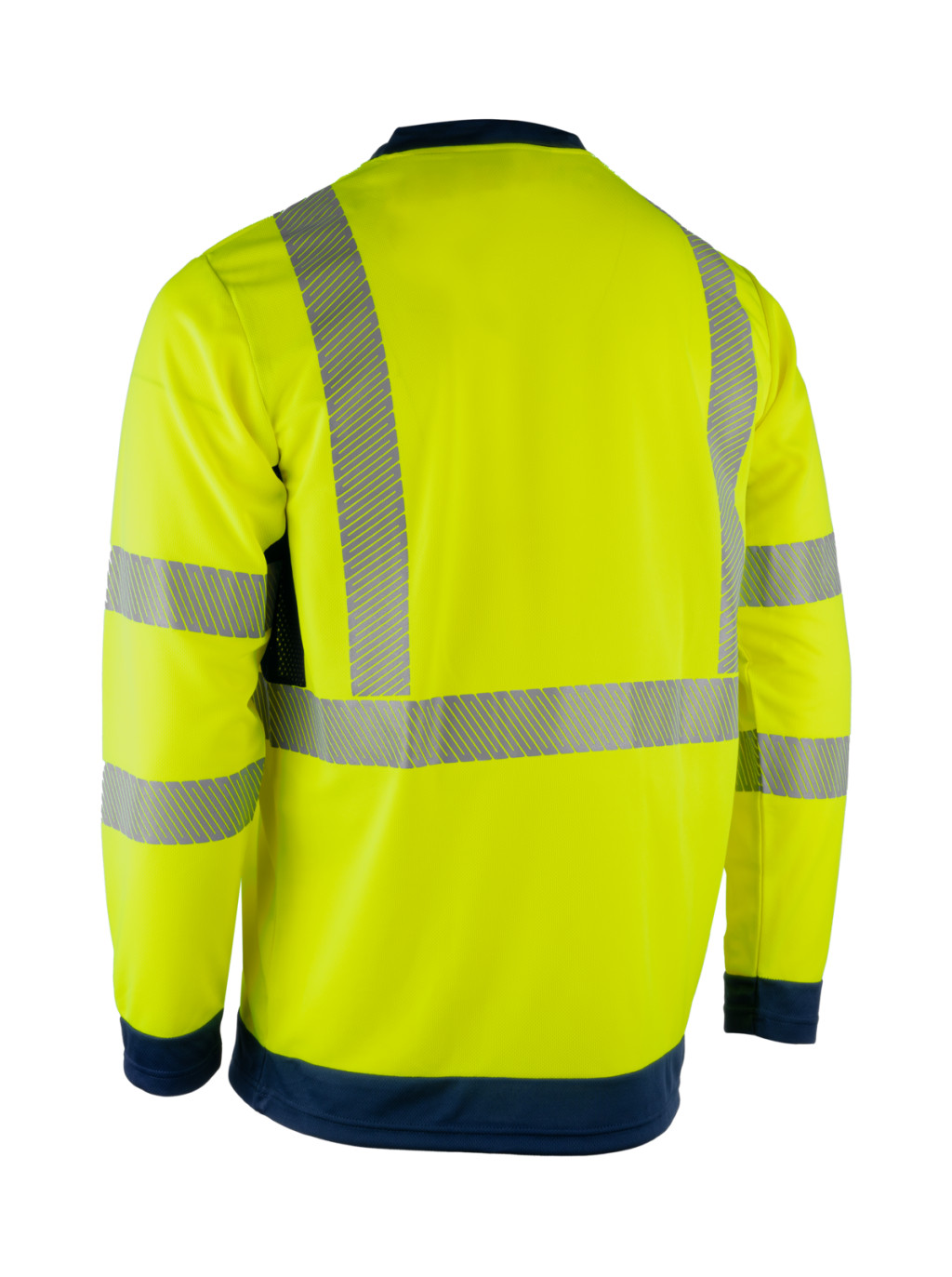 * Hosszú ujjú láthatósági pólók* Szegmentált fényvisszaverő csíkok a fokozott kényelem érdekében* Lélegző tulajdonságú 100% poliészter háló a hónaljrészen a jobb szellőzés érdekében* 50% GRS újrahasznosított PES / 50% Pamut fluoreszkáló anyag és kontrasztfelület.* UV-sugárzás elleni védelmet biztosító kezelt fluoreszkáló anyag és kontraszt rész (eleget tesz az EN 13758-1 szabvány előírásainak: UPF > 50)* V kivágású nyak